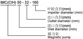 當輸送介質系統壓力大于1.6MPa時,可進行特殊設計制造【IMF型不銹鋼磁力泵】型號意義: