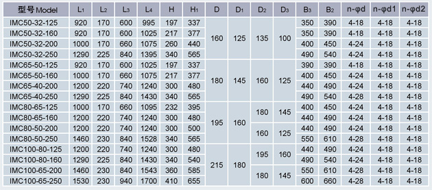 IMC型磁力傳動離心泵是我公司新研究開發的新型完全無泄漏耐腐蝕泵,其技術指標與國外同類產品水平相當。性能、尺寸和標記符合ISO2858/GB5662/DIN24256標準。