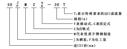 ■ JMZ、FMZ型移動式防爆酒精泵,防爆衛生食品泵,防爆輸藥泵,酒精卸車泵,防爆自吸乙醇泵型號意義: