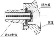 5.自吸泵的進口束節重裝時,請注意阻水閥應向正面,以便與阻水閥正面貼合保證白吸效果(見右下圖)。