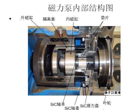 由于磁力泵的滑動軸承以所輸送的介質進行潤滑,所以應根據不同的介質及使用工況,選用不同的材質制作軸承。