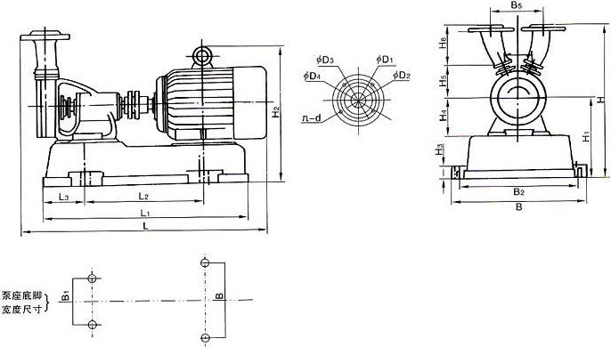W型軸聯(lián)式旋渦泵結(jié)構(gòu)圖及安裝尺寸圖