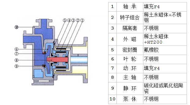 氟塑料磁力泵結(jié)構(gòu)圖