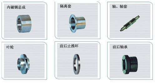 靜止的密封隅離套位于旋轉的內磁環和外磁環之間。內磁環密閉的泵送介質中。一定磁材質量M的磁性聯軸器可傳遞的功率受內、外磁環間的間隙影響很大,這就是說,當造價相同(造價主要取決于所用磁性材料的質量大小),則選取的問隙越小,傳遞的功率越大。因該結構泵輸送高溫液體,所以采用稀土元素/鈷元素永磁鐵材料傳遞有效扭矩。