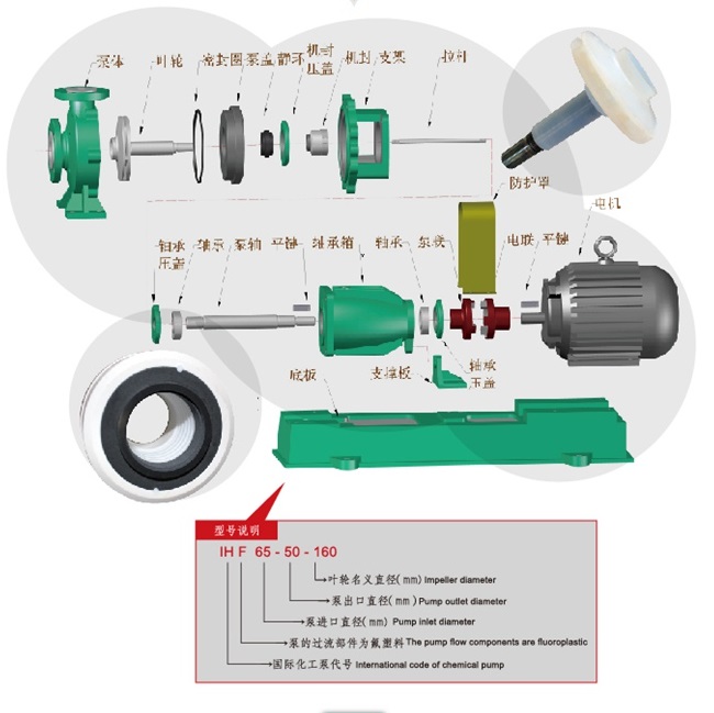 F: 過流部件材質為氟塑料合金 30:揚程是30m
