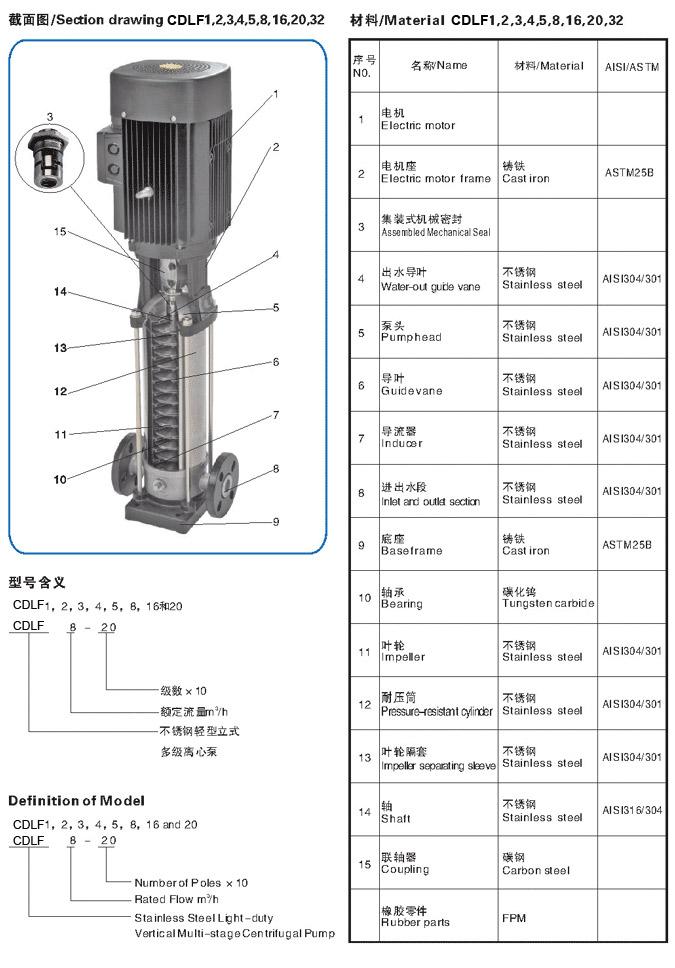CDLF輕型不銹鋼立式沖壓多級泵零件拆解實物圖