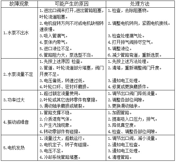 屏蔽式管道泵的使用規定 故障原因及排除方法