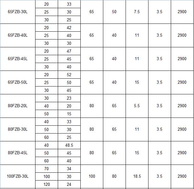 FPZ塑料自吸泵規格型號