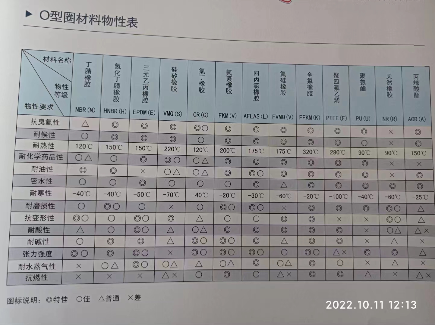 密封圈材質(zhì)有NBR西腈橡膠密封圈、HNBR氫化丁腈橡膠密封圈、SIL硅橡膠密封圈、VITON氟素橡膠密封圈、FLS氟硅橡膠密封圈、EPDM三元乙丙橡膠密封圈、CR氯丁橡膠密封圈、IIR丁基橡膠密封圈。