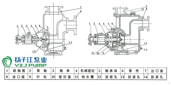 該泵均采用軸向回液的泵體結構。泵體由吸入室、儲液室、渦卷室、回液孔、氣液分離室等組成. 泵正常起動后.葉輪將吸入室所存的液體及吸入管路中的空氣一起吸入,井在葉輪內得以完全混合, 在離心力的作用下.液體夾帶著氣體向渦卷室外緣流動、在葉輪的外緣上形成有一定厚度的白色泡沫帶及高速旋轉液環。氣液混合體通過擴散管進入氣液分離室。此時,由于流速突然降低,較輕的氣體從混合氣液中被分離出來.氣體通過泵體吐出口繼續上升排出。脫氣后的液體回到儲液室,并由回流孔再次進入葉輪,與葉掄內部從吸入管路中吸入的氣體再次混合,在高速旋轉的葉輪作用下,又流向葉輪外緣……。隨著這個過程周而復始地進行下去,吸入管路中的空氣不斷減少.直到吸盡氣體,完成自吸過程,泵便投入正常作業。