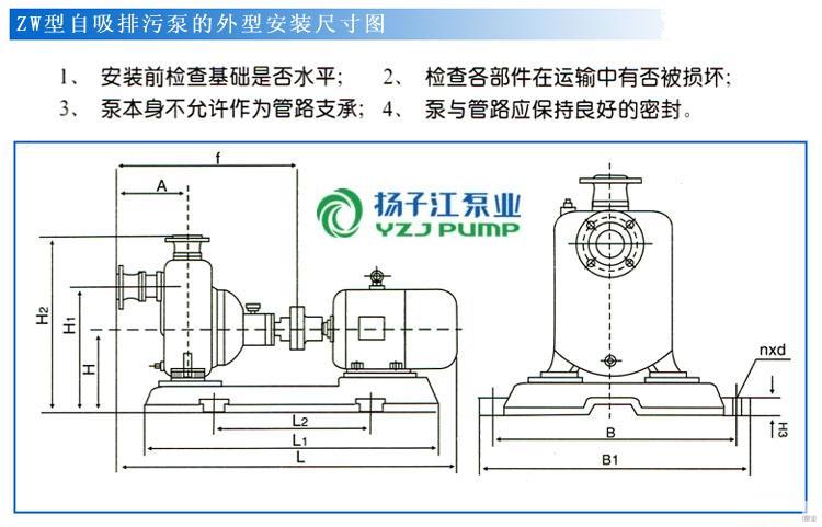 二、ZW型自吸式無堵塞排污泵(安裝尺寸)