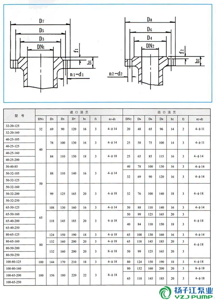 CQB-G系列高溫磁力驅(qū)動(dòng)離心泵進(jìn)出口法蘭尺寸: