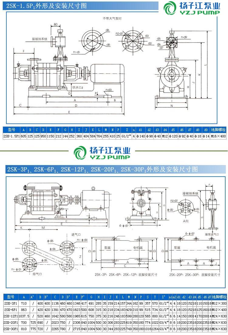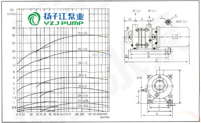 2SK-型兩級水環真空泵安裝尺寸: