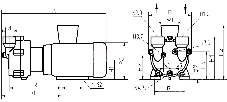 2BV2-Ex水環(huán)真空泵外形尺寸