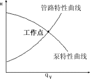 在泵葉輪轉(zhuǎn)速一定時,一臺泵在具體操作條件下所提供的液體流量和壓頭可用qV-H曲線上的一點(diǎn)來表示。至于這一點(diǎn)的具體位置,應(yīng)視泵前后的管路情況而定,討論泵的工作情況,不應(yīng)脫離管路的具體情況。 |