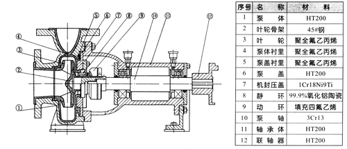 IHF型氟塑料離心泵結(jié)構(gòu)圖