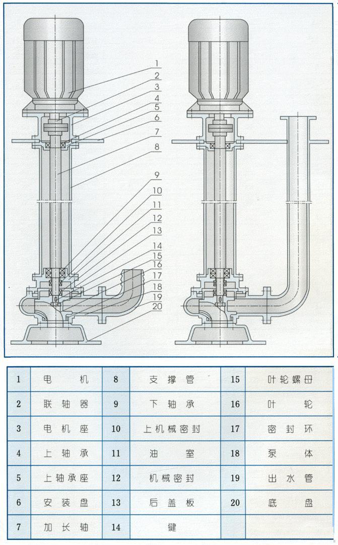 3、泵為立式結構,工作時泵體浸在液體中,因而很容易起動,不存在排氣抽空問題,同時具有無泄漏等特點,液下深度可達0.5-7米。