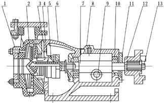該泵采用目前為先進的外裝式四氟波紋管機械密封,擁有多層保護,延長了機封使用壽命,對于輸送含雜質顆粒介質時,可配用無冷卻水單端面硬對硬(碳化硅對碳化硅)機械密封,所以用戶選型時需考慮到介質中的固體含量。