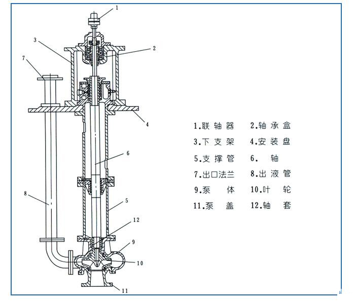 1、泵為立式液下泵,外形美觀,直接安裝在被輸送介質(zhì)的儲(chǔ)存器上,無(wú)額外占地面積,從而降低了基建投入。