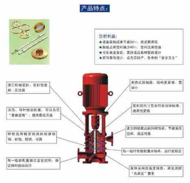 XBD-L型立式多級消防泵系立式單吸多段式離心泵,供輸送不含固體顆粒的清水及物理化學性質類似于水的液體之用。主要用于消防系統增壓送水,也可用于廠礦給排水。輸送液體的流量范圍為5~80L/s,壓力范圍為0.2~2.25MPa,配套功率范圍為1.5~200kW,口徑范圍為φ50~φ200mm。