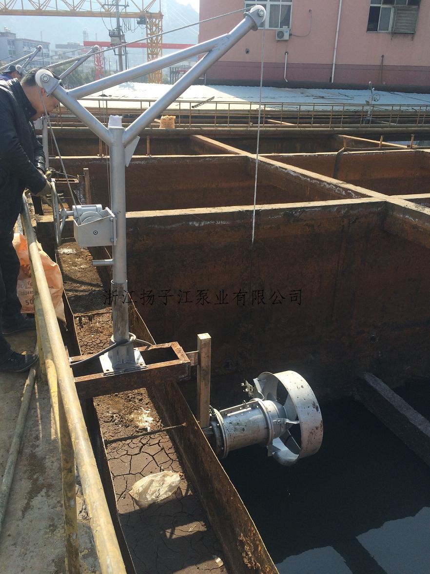 ◎通過起吊裝置上的鏈條的調節,使得潛水攪拌機沿導桿或導向鋼絲滑下過程中,起吊鉤和潛水攪拌機的起吊重心處于同一垂直線上。