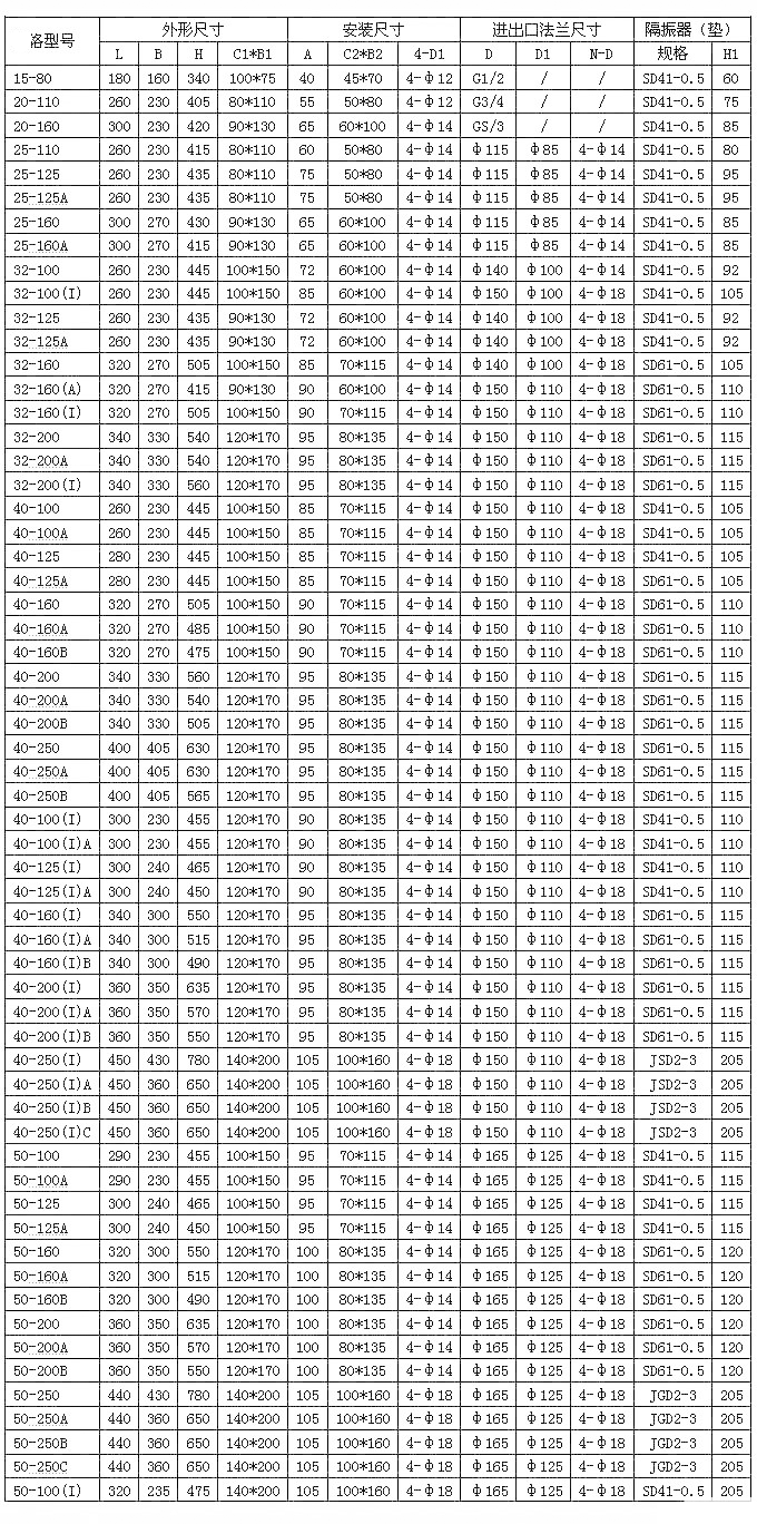 注:單級單吸管道清水離心泵參數(shù)立式泵與臥式泵相同