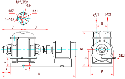 SK型水環式真空泵由于在工作過程中,做功產生熱量,會使工作水環發熱,同時一部分水和氣體一起被排走,因此,在工作過程中,必須不斷地給泵供水,以冷卻和補充泵內消耗的水,滿足泵的工作要求。